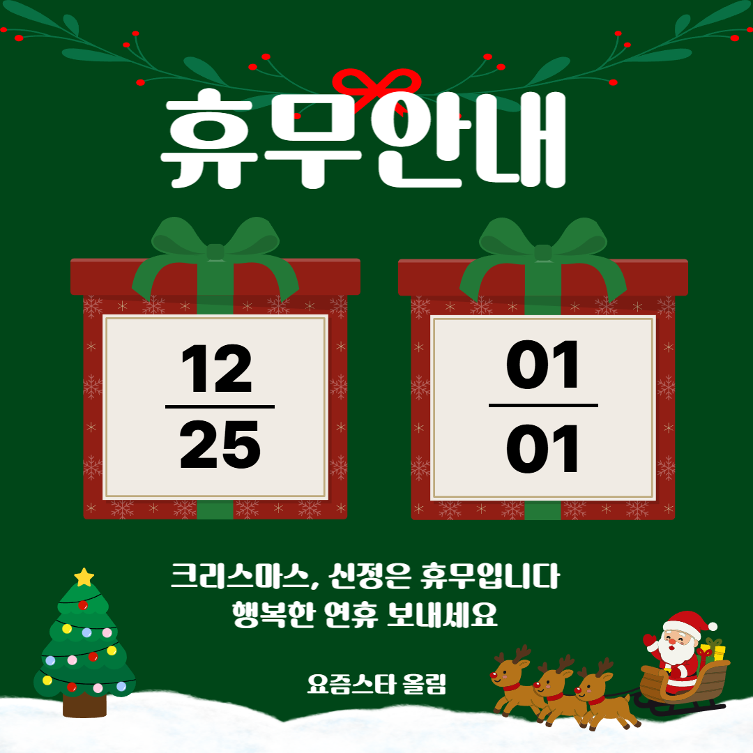 12/25 (목) 성탄절 , 1/1 (목) 새해첫날