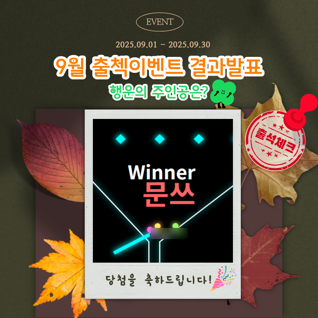 9월 한달간 진행된 출석체크 이벤트에 참여해주신 모든 분들께